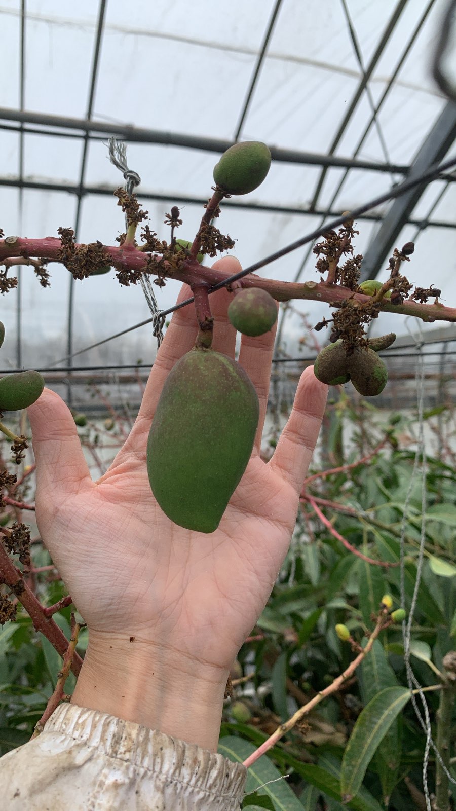 在早期能長到手指公大的就是潛力果。進入肥大期,芒果會先拉長自己,再拉肥自己,360度地飽滿。